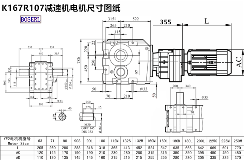 K167R107DV180M4_K167R107DT200M4_K167R107DRE225M4_K167R107DRS250M4系列減速機型號