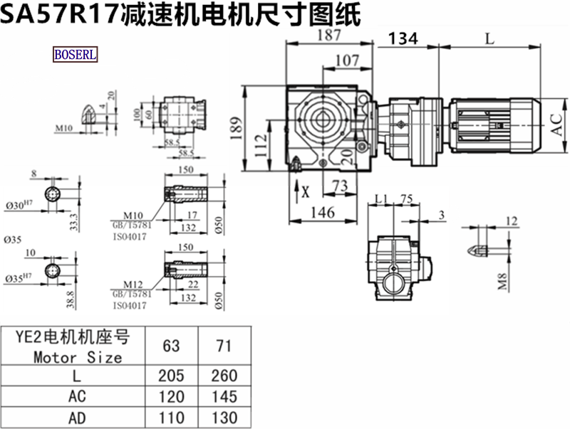 SA57R17DVE71MS4BE_SA57R17DRE63M4BE_SA57R17DR71S4BE_SA57R17DRS63L4BE減速機型號大全