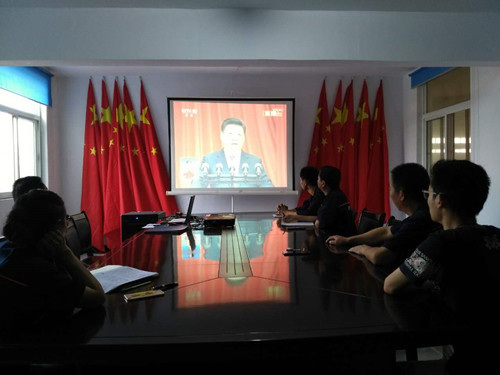 ? 會議上,全體黨員集中觀看了《中國共產黨光輝歷程偉大業績》、《中國共產黨建黨95周年習近平總書記重要講話》系列視頻。總書記的七一講話回顧了歷史,也展望了未來,以非常深沉的歷史使命感,聚焦于黨的遠大理想和崇高追求?!安煌跣?,繼續前進”,是此次講話的主題,也是一條貫穿于講話的紅線,體現了我們黨一心為人民,一切為民族的奉獻精神。